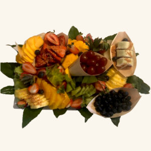 פאפאיה, ענבים אדומים, ליצ’י, לבבות אבטיח, קיווי, אנונה, אוכמניות טריות,